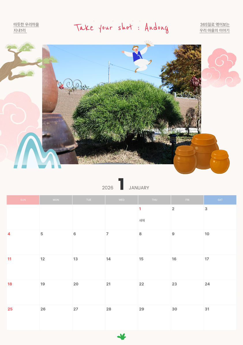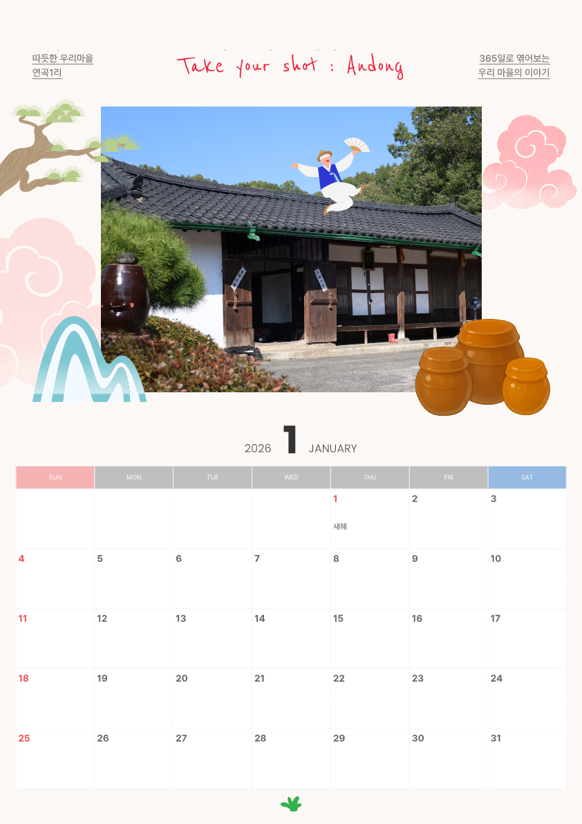기록하고 공유하는 기쁨이 담긴 이 2026년 달력을 넘길 때마다 안동의 아름다운 사계절과